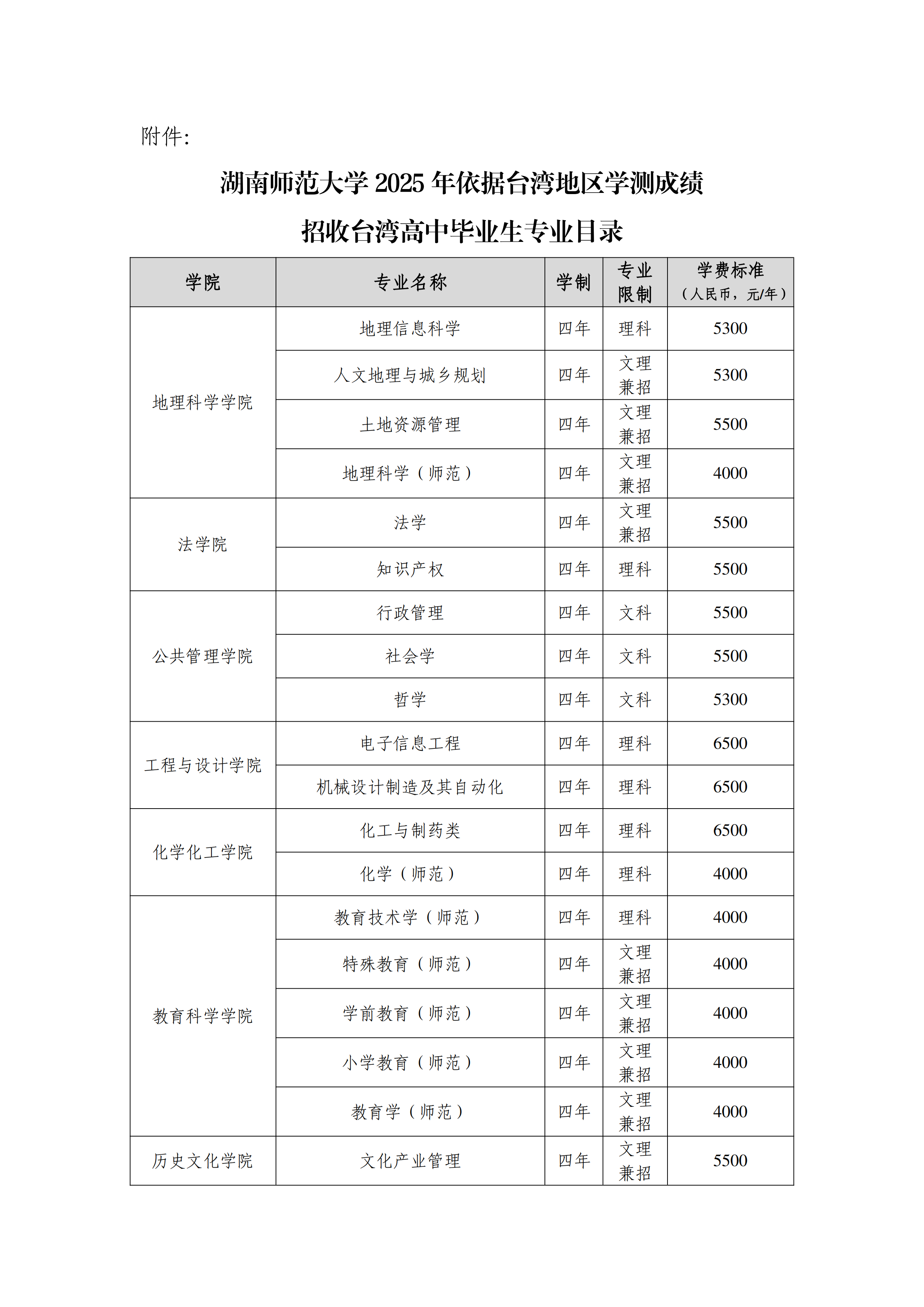 湖南師范大學2025年依據(jù)臺灣地區(qū)大學入學考試學科能力測試成績招收臺灣高中畢業(yè)生簡章